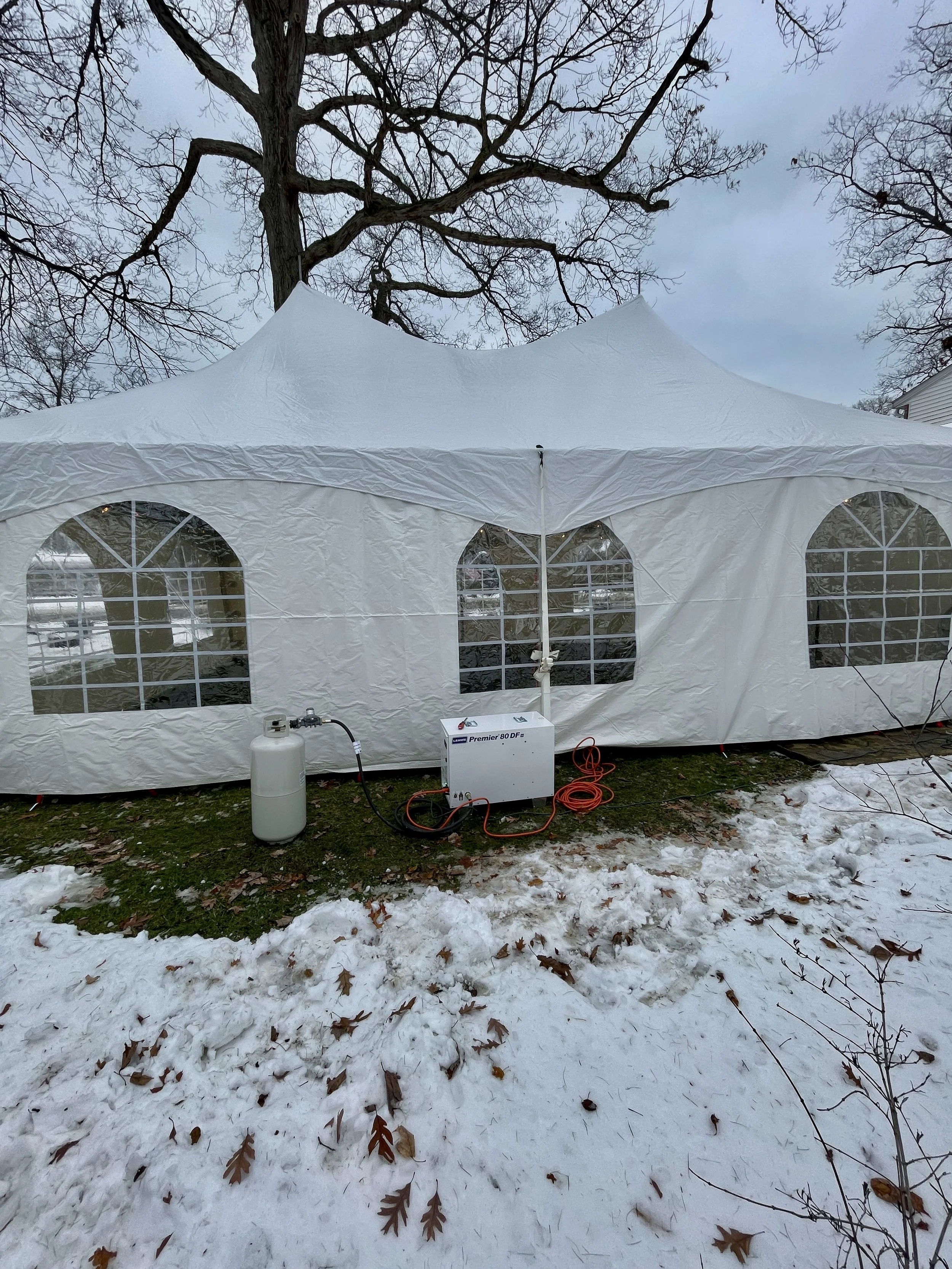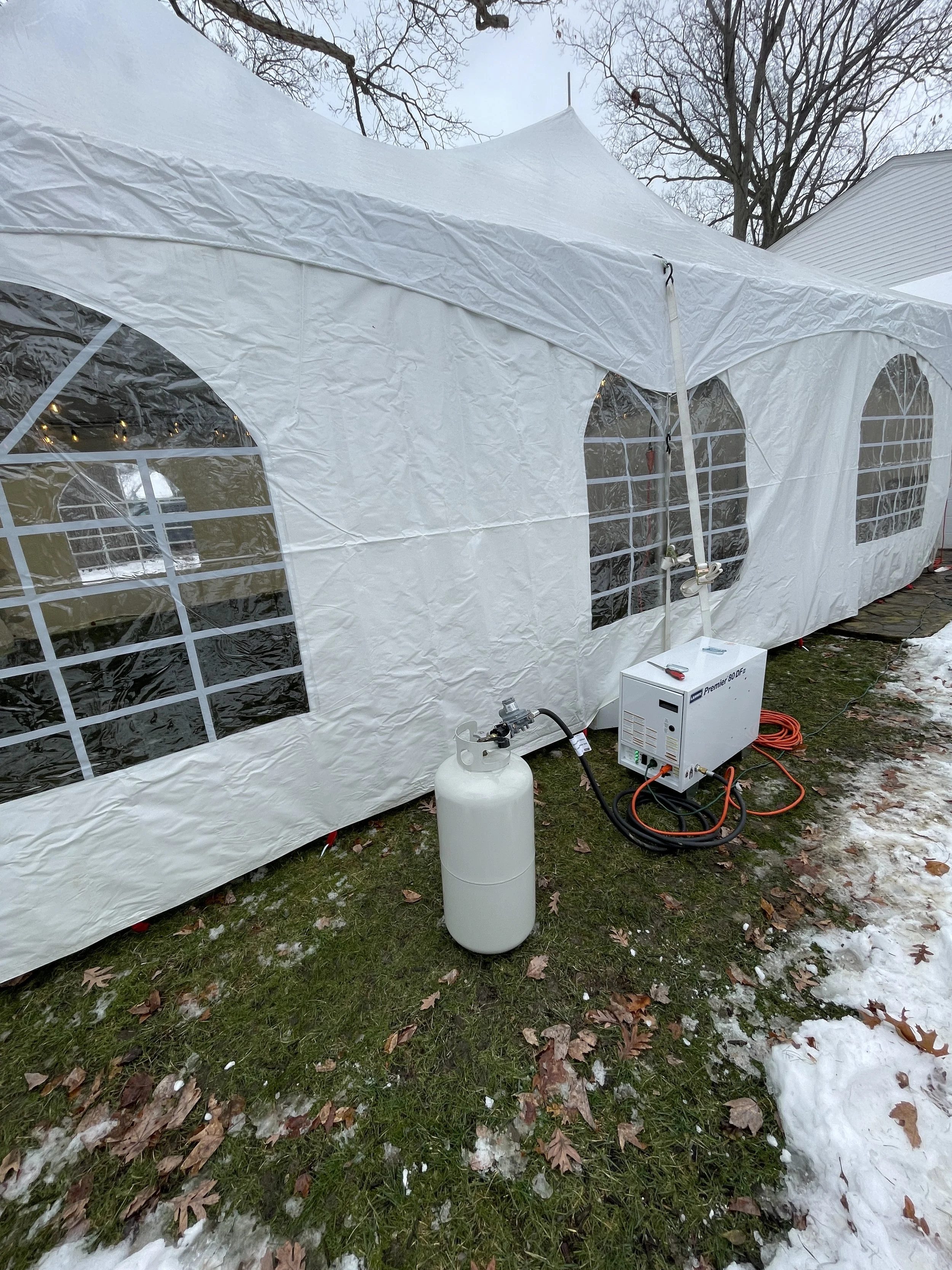 Cold weather doesn’t have to keep you from having a party! We offer High Efficiency Premier 80 Dual Fuel Tent Heaters, which are meant for outdoor events. They are dependable, safe, quiet, and easy to use. Combined with tent walls, you’ll have the perfect heated enclosed space for your party. Tent heaters can be used to provide heat and/or simple air circulation.